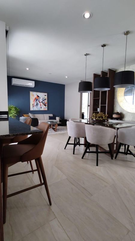 Planta baja con recibidor, amplio espacio de sala y comedor, cocina integral abierta dando una mayor amplitud de espacio de sala y comedor, barra desayunado, 1/2 baño de visitas, terraza, cuarto de servicio con baño completo, área de lavado, cochera techada para 2 autos.