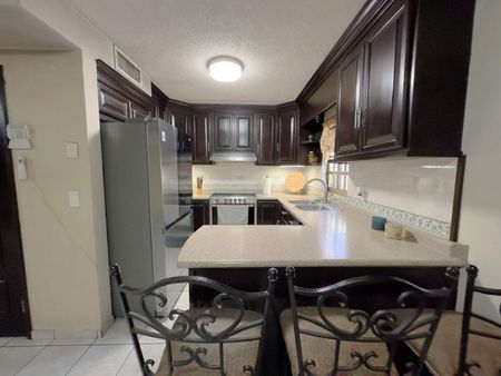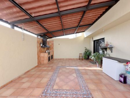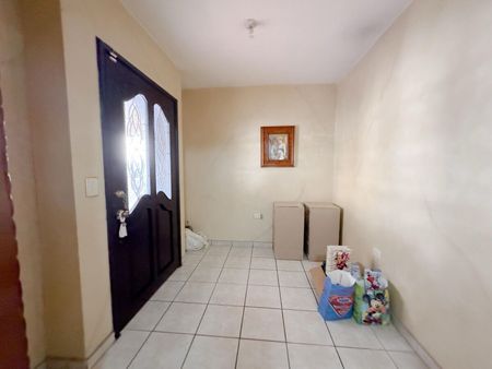 Recibidor, sala, comedor, cocina, patio techado, cochera techada para 2 autos con puerta eléctrica.