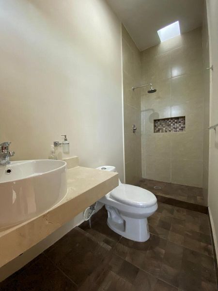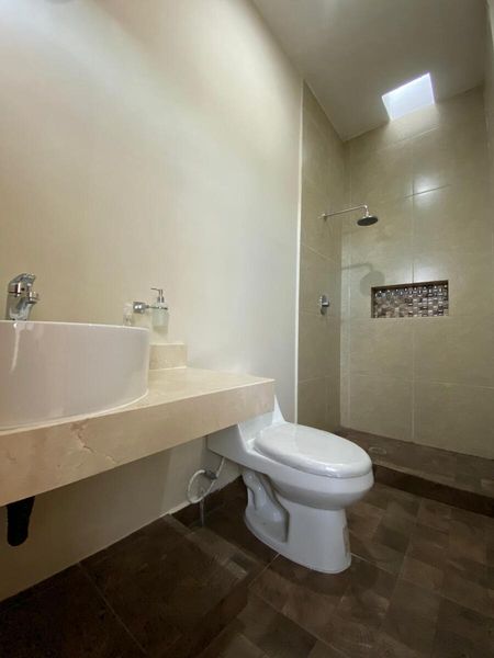 -Recámara principal con baño, doble espacio con closet, doble lavabo con aire acondicionado y ventilador.