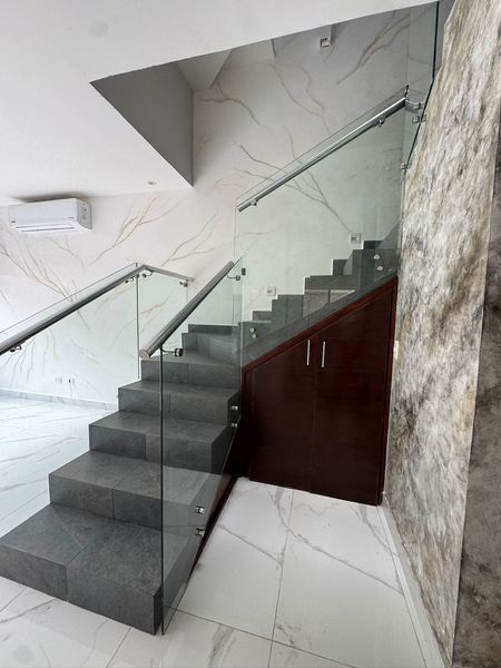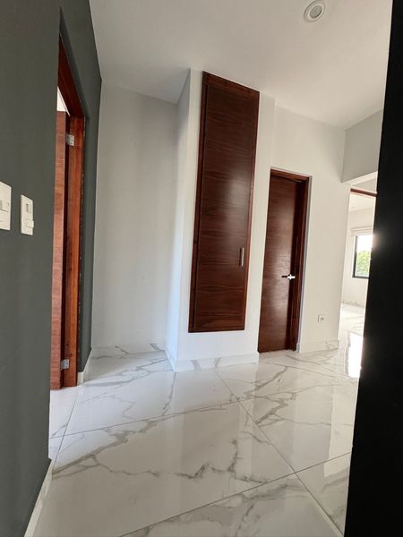 Piso 1: Cuarto principal con closet vestidor y baño, 2 cuartos secundarios que comparten baño completo, closet de blancos.