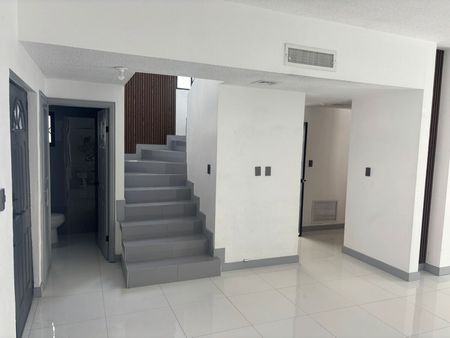 Casa recientemente remodelada consta de dos plantas; 2 1/2 baños, 3 recámaras, patio y cochera para 2 vehículos.