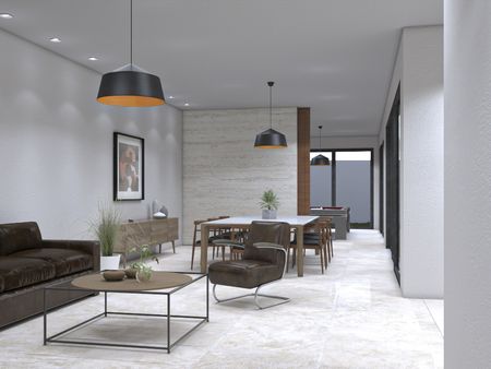 Planta baja: Sala, Comedor, Cocina con isla, incluye Cocina integral. ½ Baño, Cochera techada para 2 autos , Cuarto de Juegos, Jardín de 121 M2.