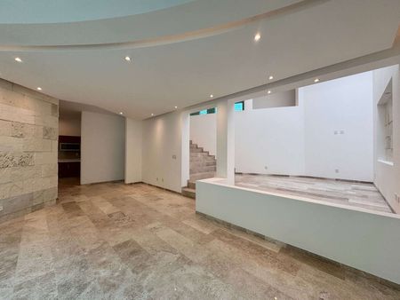 Entrando por la entrada principal tenemos el recibidor, un área de bar privado con su minicocineta con tarja, medio baño para visitar y para la sala/comedor se bajan unos 7 escalones, la cocina integral con terraza techada que cuenta con 2 medios baños nuevos, 1 medio baño y 1 recamara con closet y baño completo, 1 recamara con baño completo, vestidor, cuenta con cochera techada para 3 autos, en el área de la cochera hay 2 bodegas.