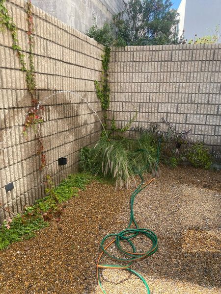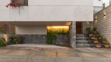-Muros a base de block cara de piedra acabado aparente en jardín posterior,