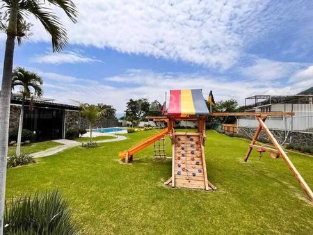 - Casa club familiar con terraza, alberca, jacuzzi, área de juegos infantiles, amplias áreas verdes y jardín lineal.