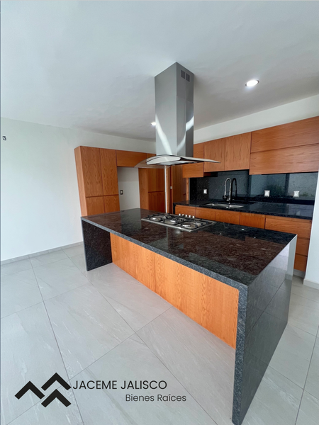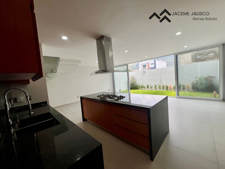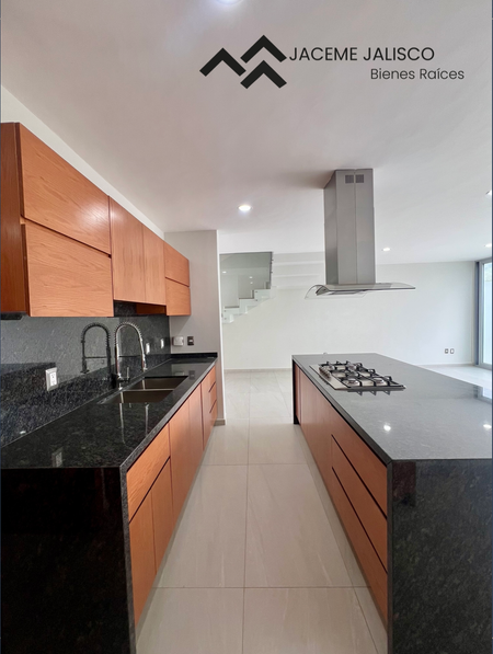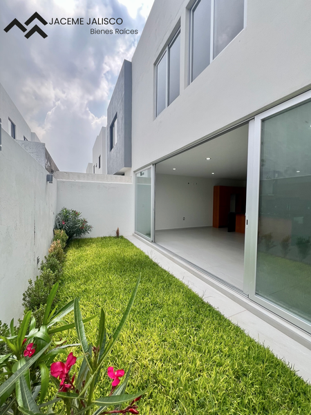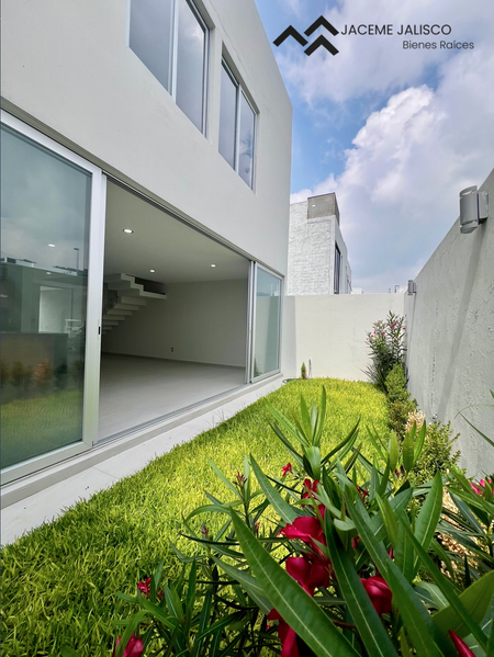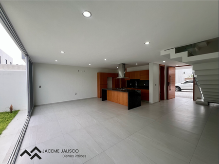 Planta baja: Estacionamiento para dos autos, amplia sala-comedor, cocina integral con isla, medio baño, amplia área de lavado, hermoso jardín.