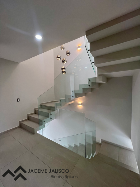Planta alta: Estar de TV, 3 recamaras, principal con vestidor y baño completo, secundarias con closet y baño compartido.