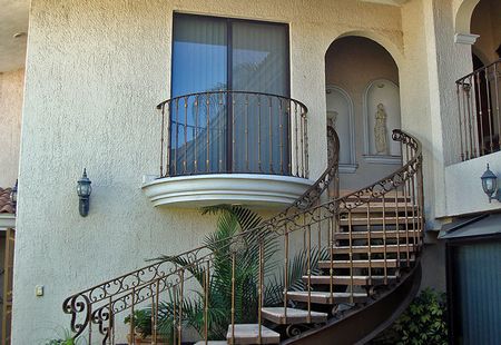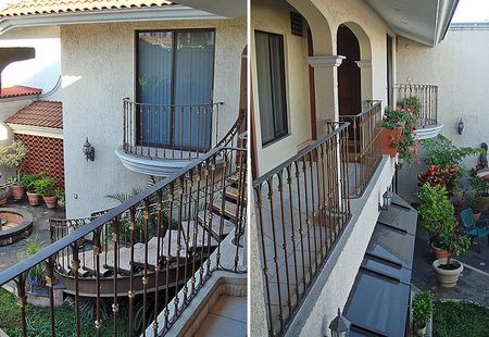 Primer nivel – Sala, bar, un baño completo, estudio con aire acondicionado, escalera de herrería.