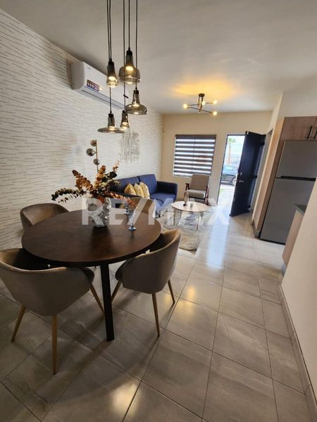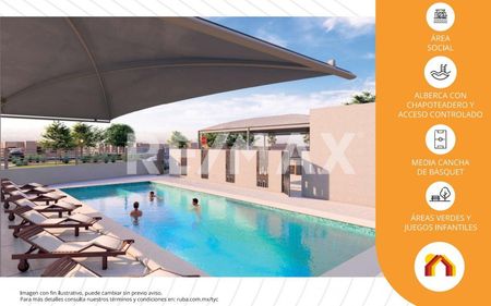 La vivienda se distribuye en un solo nivel, con área de sala, comedor y cocina, tres recámaras, un baño completo y patio posterior.
