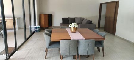 Cuenta con 3 recamaras con baño completo cada una, cuarto de TV, cuarto de lavado, cuarto de servicio, cocina, comedor, sala, terraza grande con asador, jacuzzi y jardín.