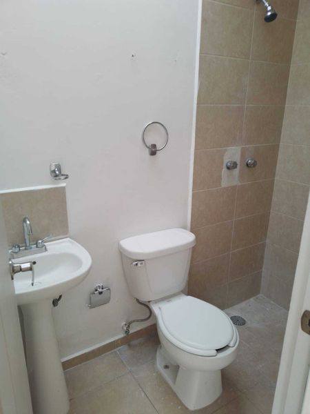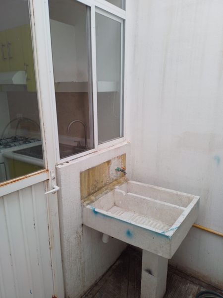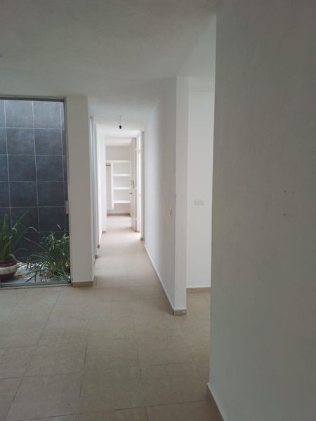 Dos baños,dos recamaras,sala ,comedor,patio de servicio, patio para una tercera recamara, cocina.