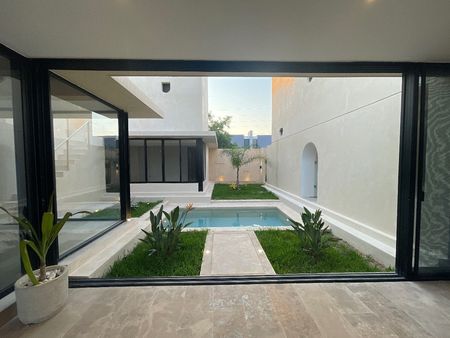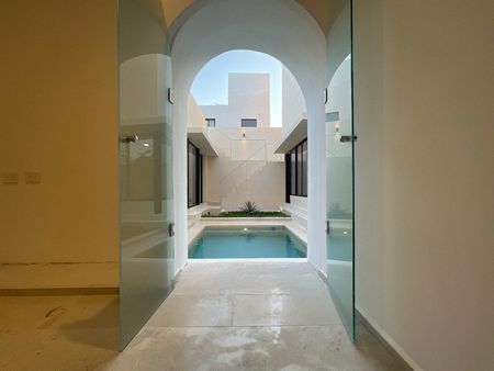 En planta baja también podrás disfrutar de la alberca central en el patio de la casa.