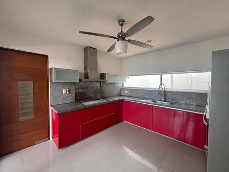 Bodega, cocina completa, cuarto de servicio con baño completo y alberca.