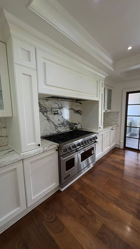 La cocina es el corazón de la casa, con una estufa estilo profesional y amplios espacios de preparación. El diseño es moderno y a la vez sobrio, funcional perfecto para cocinar en grandes grupos.