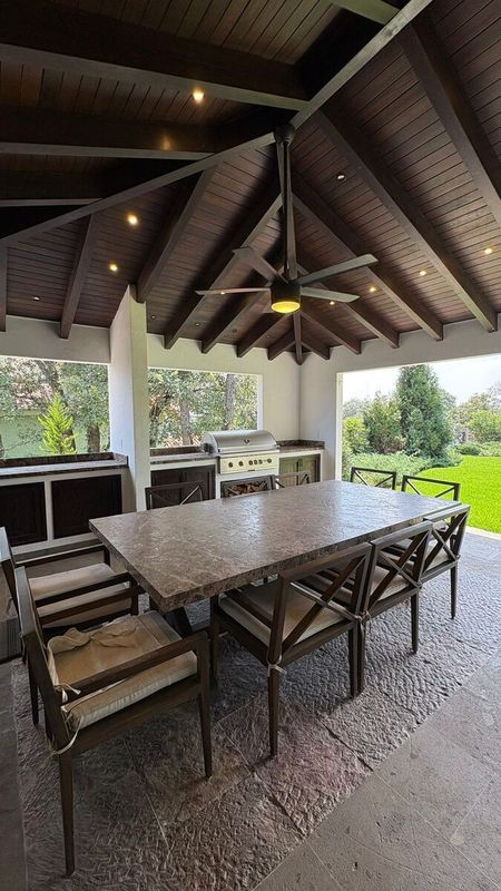 Cuenta con un jardín enorme con áreas de descanso y espacios para entretenimiento, es el lugar perfecto para disfrutar del aire libre, la salida al jardín desde la cocina o sala es directa, lo que permite una transición fluida entre el interior y el exterior.