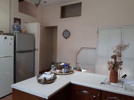 A un costado de la cocina se ubica una escalera, con acceso hacia la azotea, donde se encuentran tres cuartos y un baño completo, y amplio espacio aprovechable de azotea.