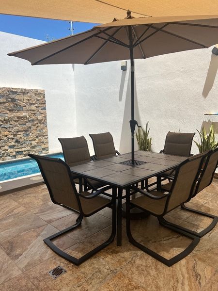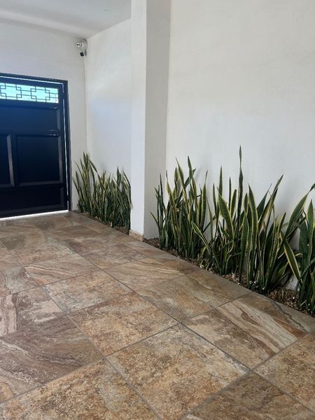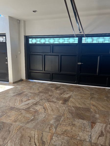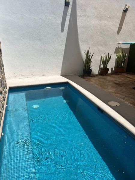 Área de sala comedor , cocina integral, área de jardín con alberca , cochera para dos autos c/portón eléctrico .