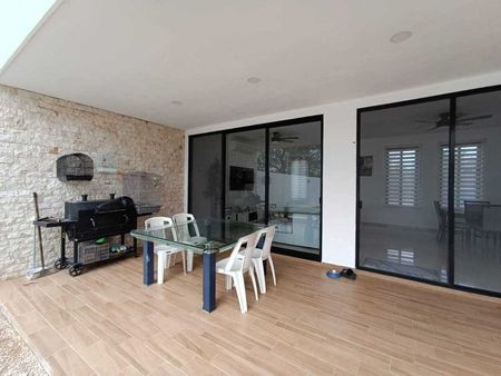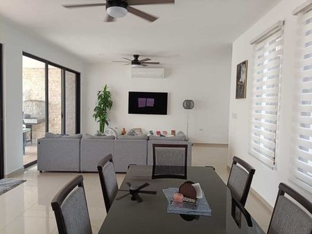 Casa con espacios muy amplios, cada recámara tiene vestidor. Incluye 16 paneles solares, ventiladores, persianas, aires acondicionados, mosquiteros, persianas, parrilla, calentador eléctrico.