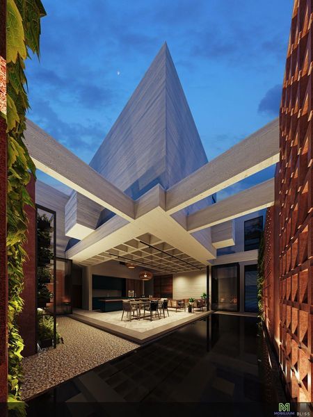 Casa con estilo arquitectónico vanguardista e introspectivo y diseño industrial mexicano.