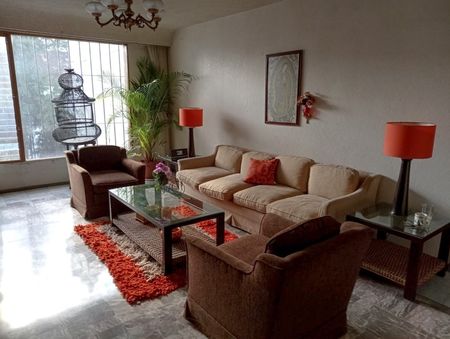 Casa en venta con ubicación privilegiada en la Colonia Florida, ideal para aquellos que buscan espacios amplios y bien distribuidos. La casa cuenta con 5 recamaras, 3 baños completos y 4 espacios de estacionamiento techados. La cocina integral es un verdadero placer para los amantes de la gastronomía, con espacio suficiente para una isla/comedor de servicio, alacena independiente y acceso al jardín con terraza. La casa tiene una biblioteca/estudio y un salón de juegos para días de entretenimiento. En la planta alta se ubica una sala de Tv, sala de estar y 4 recámaras, una de las cuales es la recamara principal, que cuenta con un amplio vestidor, baño completo y balcón exterior. Las otras 3 recamaras tienen clóset integrado y comparten 2 baños completos. La casa cuenta también con área de servicio que se encuentra en una estructura separada de la casa con 3 cuartos de servicio con baños completos, 2 bodegas pequeñas y un cuarto de lavado con espacio suficiente para el equipo necesario de lavandería. Esta es una propiedad que combina elementos de lujo con una distribución práctica y funcional en la mejor ubicación de la Colonia Florida.