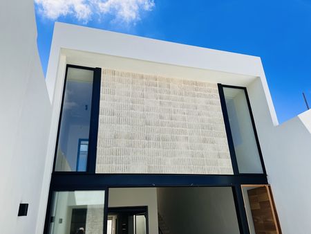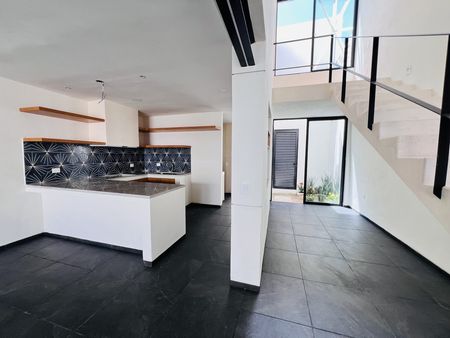 Esta casa con estilo contemporáneo ofrece espacios abiertos y muy cómodos, en la planta baja todo está conectado, hasta con el área de la alberca, por lo que puedes estar cocinando y conviviendo con la familia e invitados. El techo doble altura que tiene en el área de la estancia le da más amplitud, frescura y claridad.