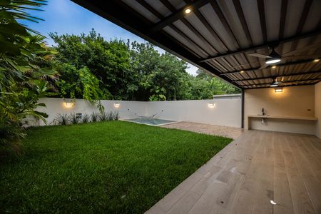 Su distribución aprovecha la luz natural y la ventilación cruzada, integrando las áreas sociales con el jardín y la piscina privada.