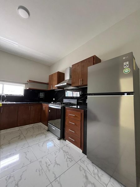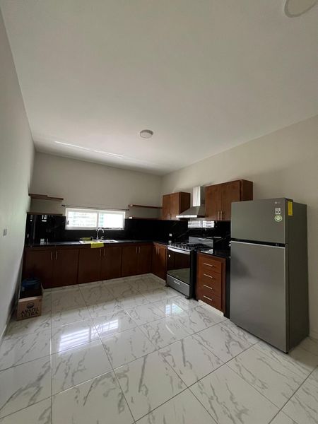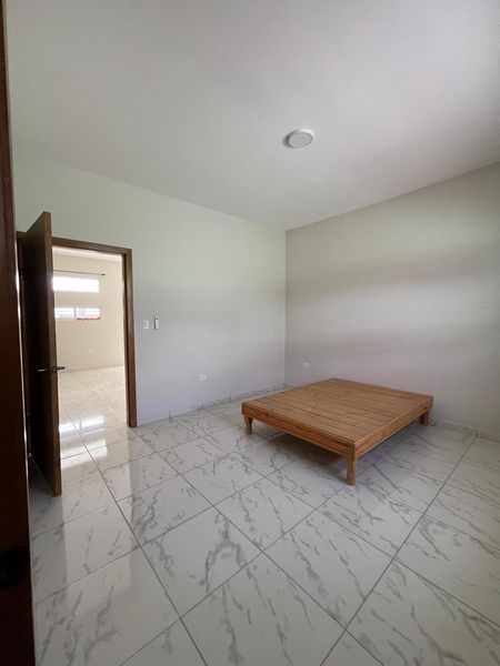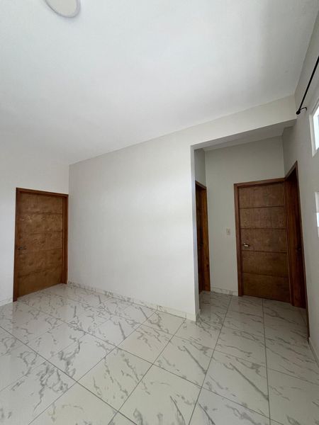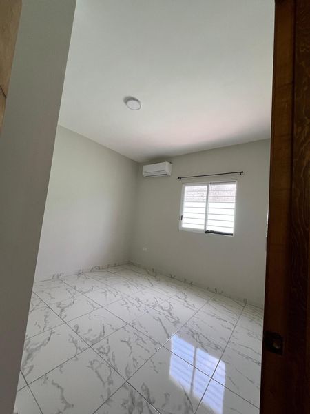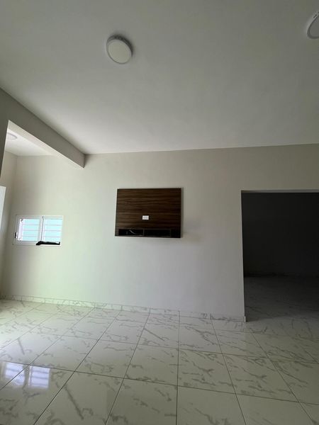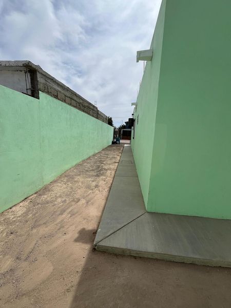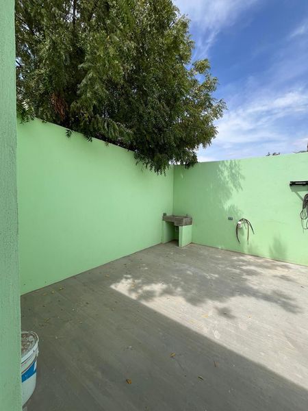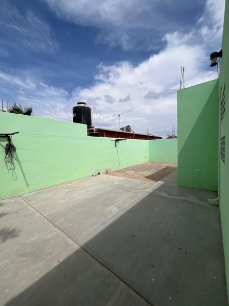 Patio trasero con piso, lavadero y tendedero. Bardas lateral y fondo, cerca de malla frontal