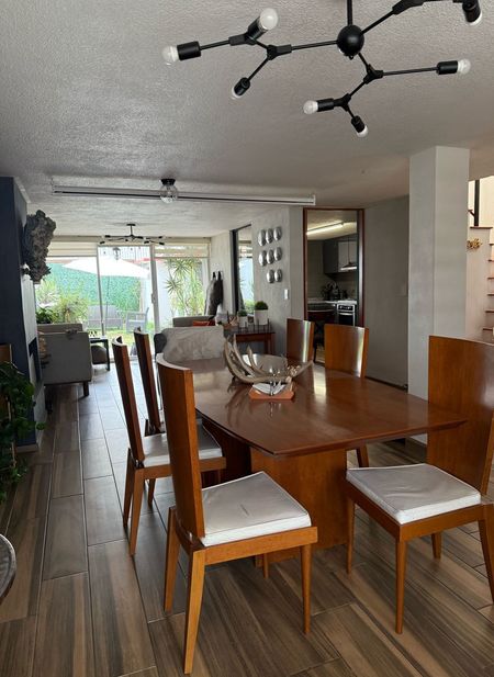 Sala con chimenea, comedor, cocina integral, alacena, medio baño ,área de lavado, cuarto de servicio con baño, jardín amplio en la parte de atrás y a un costado, estacionamiento 3 autos.