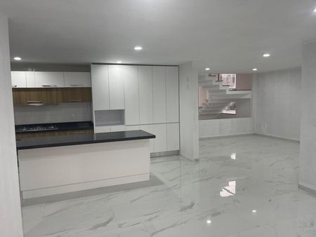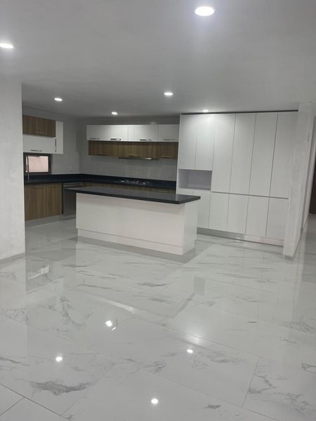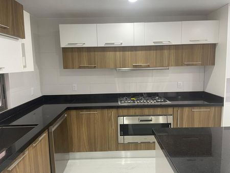 Sala,comedor, cocina integral, área de lavado, cuarto de servicio con baño, recamara o estudio, terraza, estacioamiento 3 autos.
