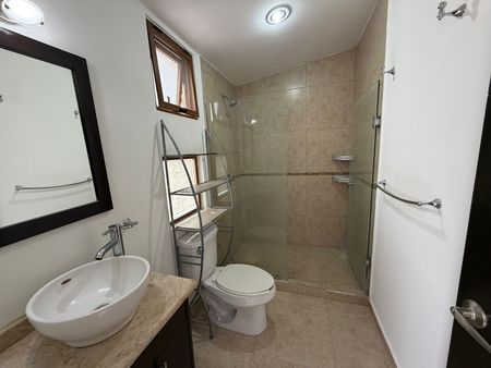 El condominio cuenta seguridad 24/7, alberca, salón de evento con terraza, áreas verdes y pista para caminar.