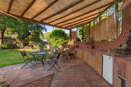 principal, jardín y alberca con jacuzzi y a una segunda terraza techada equipada con asador y acceso directo al Campo de Golf. Este proyecto ofrece una cocina recién renovada y equipada con torre de hornos de gas, vaporera, cajón caliente,