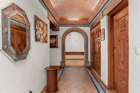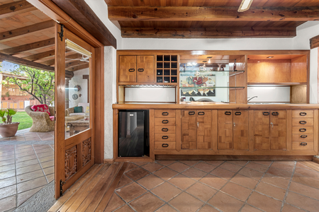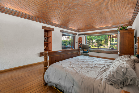cafetera de barista y amplia alacena. La casa tiene un área social con bar, sala de TV, dos habitaciones secundarias cada una con su propio vestidor y baño completo y una de ellas con un tapanco con buena altura. La habitación principal es muy amplia y cuenta con una bella bóveda catalana en su techo, gran vestidor, baño con doble lavabo y jacuzzi. Adicionalmente, Esta casa cuenta con celdas solares, cámaras de seguridad, un cuarto para huéspedes con entrada independiente, cuarto de servicio y área de lavandería y un cuarto como oratorio o estudio. Conócela y se testigo de su arquitectura única que integra elementos con madera, cantera, talavera entre otros materiales que hacen de ésta Casa un proyecto único.