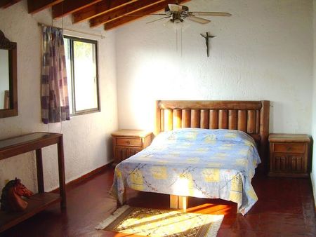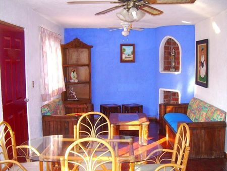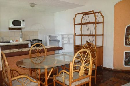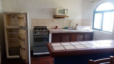 Consta de Sala, comedor, cocineta, tres recamaras dos baños completos, ventiladores en toda la casa, refrigerador, licuadora, microondas, utensilios de cocina, toallas, ropa de cama. Jardín y alberca común para seis casas.