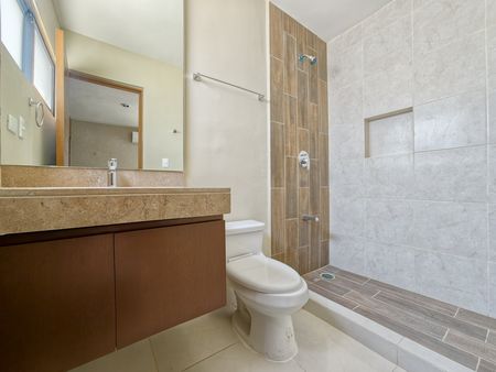 Espacios amplios ya que los terrenos son de 12m de frente por 21.8m de fondo lo que deja espacios amplios de construcción siendo una casa cómoda para toda la familia. Su característica habitación en planta baja con espacio de clóset y baño propio, perfecta para las necesidades de la familia.