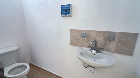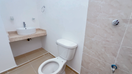 -MESETA DE BAÑO ON RECUBRIMIENTO MÁRMOL TRAVERTINO.