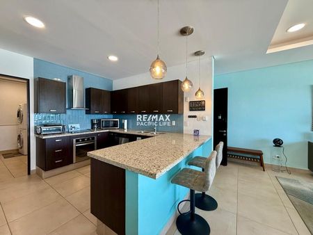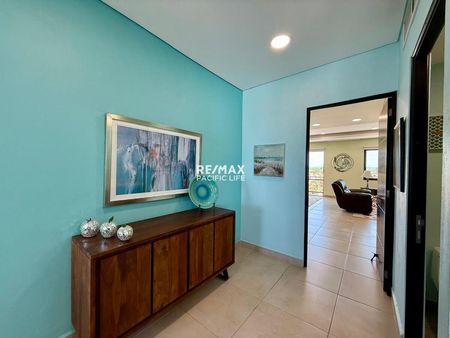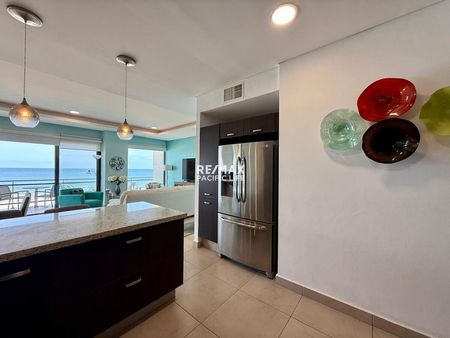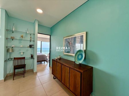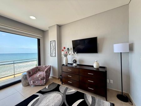 Este espectacular departamento frente al mar ofrece una experiencia de lujo y comodidad en cada rincón, con dos amplias recámaras, dos baños y medio, y una distribución pensada para disfrutar al máximo de las vistas y del entorno. La terraza climatizada y de gran tamaño se convierte en el lugar ideal para apreciar la vista al océano, extendiéndose hacia el horizonte, y los atardeceres más hermosos que bañan cada tarde con tonos cálidos.