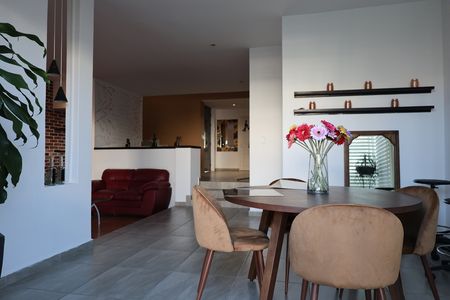 Sala y comedor con acceso a amplio jardín con pérgola ideal para tus reuniones.