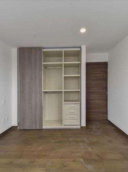 Dos recámaras, la principal con vestidor y baño privador, la secundaria con clóset y junto al baño completo.