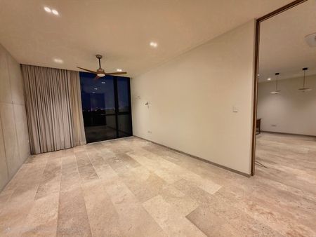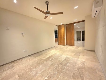 Todo el departamento cuenta con climas, ventiladores, cortinas, las ventanas cuentan con Defender Glass y Cerradura inteligente marca August en puerta principal.
