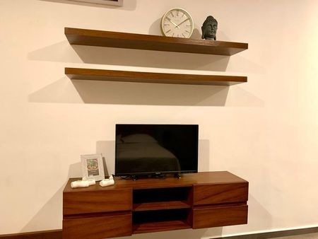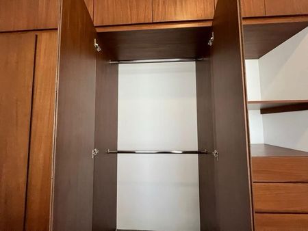 Recámara 1 equipada con cama queen size, TV, aire acondicionado, ventilador y closet vestido. Baño propio.