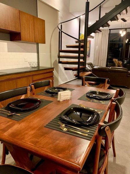 Planta Baja: consta de sala comedor, cocina equipada, medio baño, bodega de almacenaje, balcón. (TV, aires acondicionados, ventiladores y lámparas decorativas)