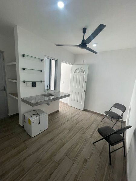• 1 recámara con cama matrimonial, mueble para ropa, minisplit y Smart TV.