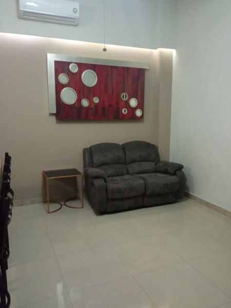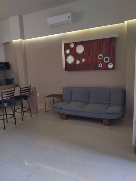 La sala cuenta con un cómodo sofá cama y una Smart TV para tus momentos de entretenimiento. El aire acondicionado y la conexión a internet aseguran que tu estancia sea fresca y conectada. Además, en el tercer piso, encontrarás un área de lavado para tu conveniencia.