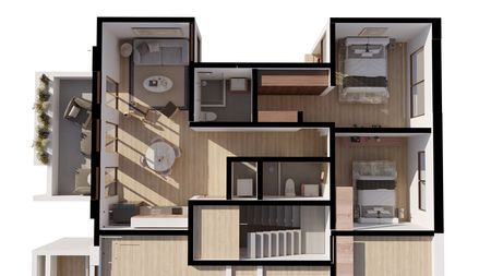 Descubre la comodidad y el diseño moderno en esta edificación de dos niveles, que alberga cuatro departamentos de dos recámaras cada uno, con espacios pensados para el confort: amplia sala-comedor-cocina, área de lavado y dos baños y medio.