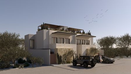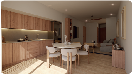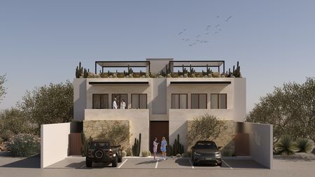 Descubre la comodidad y el diseño moderno en esta edificación de dos niveles, que alberga cuatro departamentos de dos recámaras cada uno, con espacios pensados para el confort: amplia sala-comedor-cocina, área de lavado y dos baños y medio.
