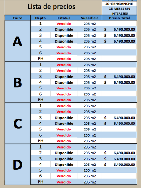 Cada departamento esta compuesto de: sala, comedor, cocina y una extensa terraza con vistas al mar, bano de visitas, tres recamaras y area de servicios.