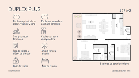 DUPLEX PLUS: Descubre una versión más grande y más espaciosa del departamento de tus sueños, adaptada para disfrutar de una vida confortable.