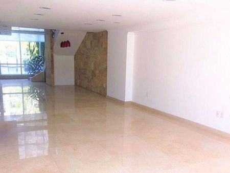 Garage para 5 autos, comedor, sala con doble altura, cocina equipada, family room, 3 recámaras con baño, terraza muy amplia, cuarto de servicio y 2 bodegas.