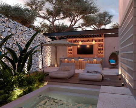 -Estacionamiento techado y de visitas -Portón eléctrico -Área de basura -Áreas verdes -Camastros -Piscina -Bar