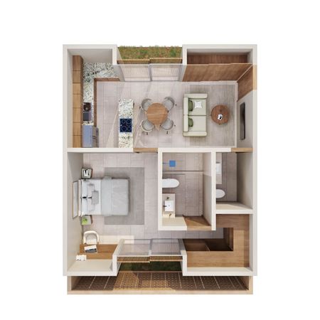 **Las ilustraciones deberán ser considerados como una guía o representación gráfica cercana al producto final, el cuál podría tener ajustes o modificaciones. Los muebles, elementos decorativos, luminarias y demás accesorios y/o equipamiento no están incluidos en el precio de venta y entrega de la propiedad a menos que se estipule por escrito lo contrario. Consulte con su asesor cuál es el equipamiento y/o accesorios a entregar.